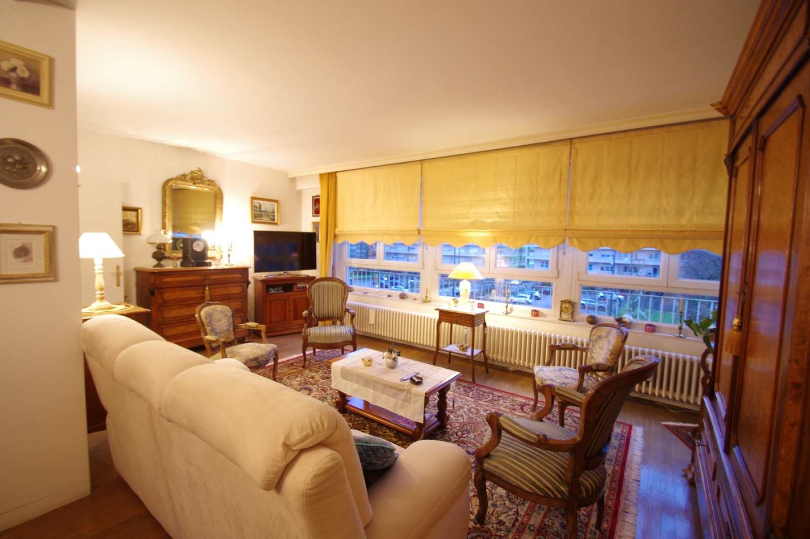 L'appartement est équipé de double vitrage PVC avec volets motorisés et de parquet massif dans les pièces à vivre.